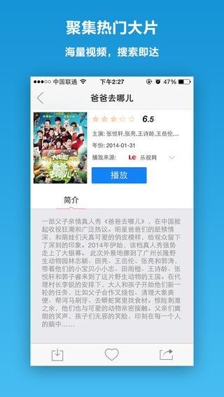 快看影视通过开放协议,整理中国最全的影视视频库,方便用户查找视频应用。