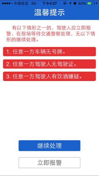 事故e处理ios苹果版是北京交管局、北京保监局联合推出的交通事故快速处理手机软件,能够帮助用户快速处理机动车交通事故系统。发生交通事故后,您可以按照手机客户端提示,方便快捷的实现手机联网在线处理事故。欢迎下载使用!