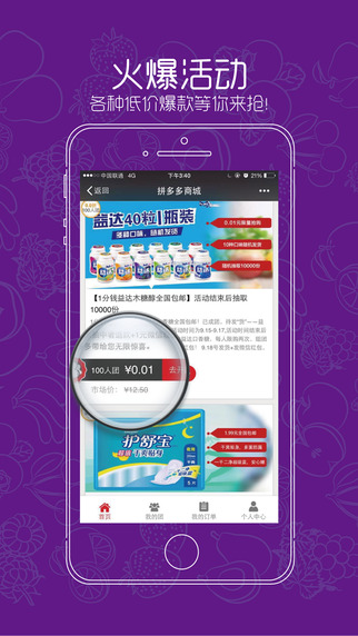 拼多多是一种全新的网上购物模式,是真正意义上的团购。用户通过发起和朋友,家人,邻居等的拼团,以更低的价格,拼团购买优质商品。