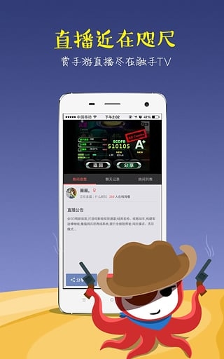 触手TV是中国第一家专注手机游戏的直播平台,无需电脑,只需要使用自己的手机,即可让玩家随时随地通过手机直播来实时分享自己的手游乐趣。