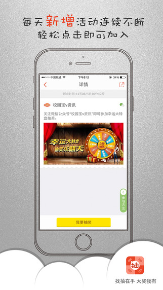 微博,微信中每天有多少抽奖活动?令人眼馋的奖品每天就在你手边溜走!网络上每天有多少免费赠送奖品的活动就等你来参加?甚至是直接送现金花费!使用找抽,奖品尽入囊中不是梦想!