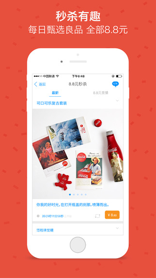 - 每天8.8元秒杀,拼手速,拼网速,天天都过剁手节。