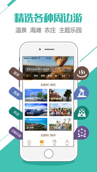 要出发周边游——是要出发旅行网全力打造的周边旅游精品应用。每周为您推荐上千家精选城市周边特色景点和酒店,帮你发现周边游玩好去处,并且让你以最优惠的价格,享受最具特色的周边游体验!