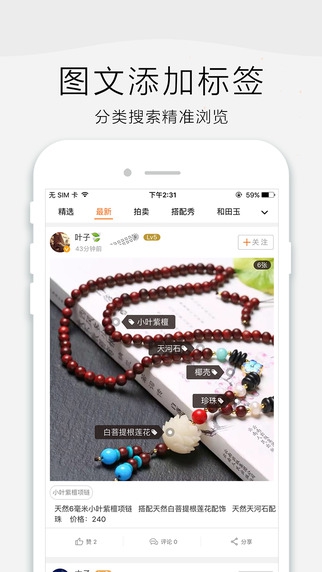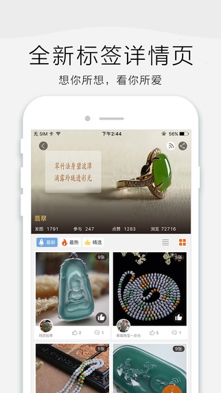 4.用户可以收藏自己感兴趣的标签,例如:(和田玉、翡翠等),这样可以快速找到有共同爱好的朋友