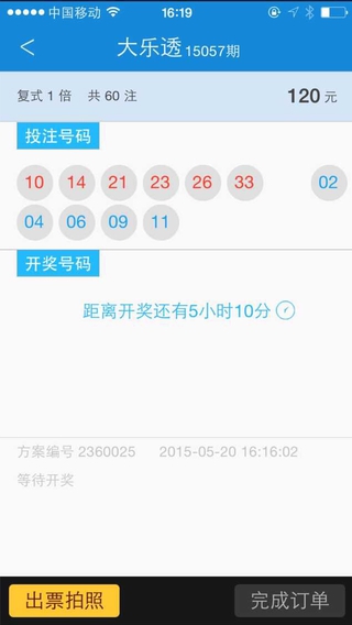 3、出票拍照:确认无误后出票,完成拍照即刻发送给彩民;