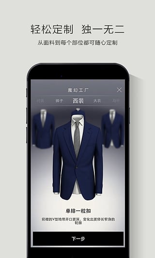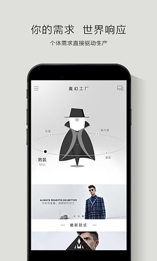 魔幻工厂,是全球首款由买家自主设计定制高品质服装的移动网上购物平台。商品囊括时尚男装、女装、童装及设计师品牌,精选上千个潮流款式、近万种高档面料,欧美一线服饰大牌代工厂生产直送;动动手指,就可在家坐享“造物”乐趣,让“私人订制”从此不再奢侈;让“个人品牌”成为现实。