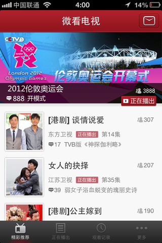 4、电视直播:十几个台的高清电视,随时随地免费看!