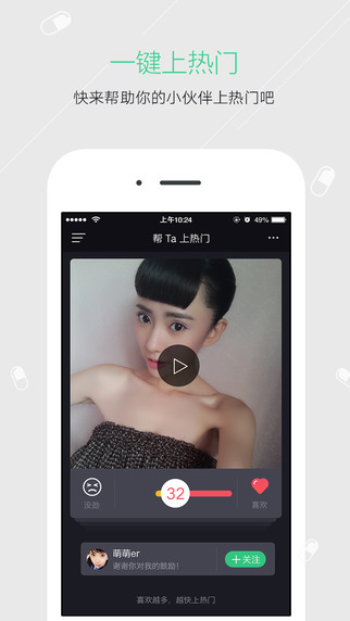 1、增加好友关注 2、增加制作合集功能 3、增加帮他上热门 4、开放后置摄像头