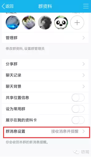 QQ群设置->群消息设置->接收消息并提醒