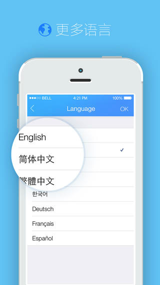 QQ国际版提供多种系统语言给用户选择,有英语、简体中文、繁体中文、日语、韩语、德语、法语和拉丁语,基本覆盖全球过半人群。一款小而美的应用应该是繁简有序,该简洁的地方绝不拖泥带水。