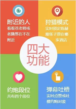 2、滴滴打炮通过O2O的创新模式,连接线上线下的炮男炮女,提供基于LBS的社交服务,力求打造全球首家一站式打炮服务平台!