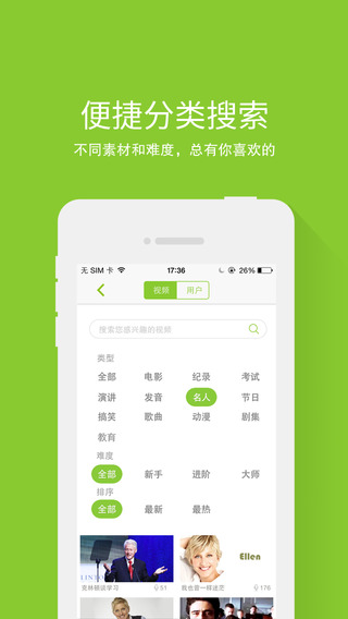 2.独家制作:还原历年大学四六级考试真题视频情景、新概念视频情境等,专业团队制作,独家推出,不断丰富,帮您更好地备战英语考试!