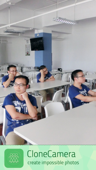 克隆相机一款能够将数张照片拼接在一起,从而能在一个场景中显示出多个自己的拍照软件。