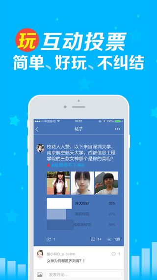 [讨论]:支持文字、图片发帖,既可以在精彩话题下参与讨论,也可以自己创建全新话题。发表个性意见,不服?不服来战三百回;