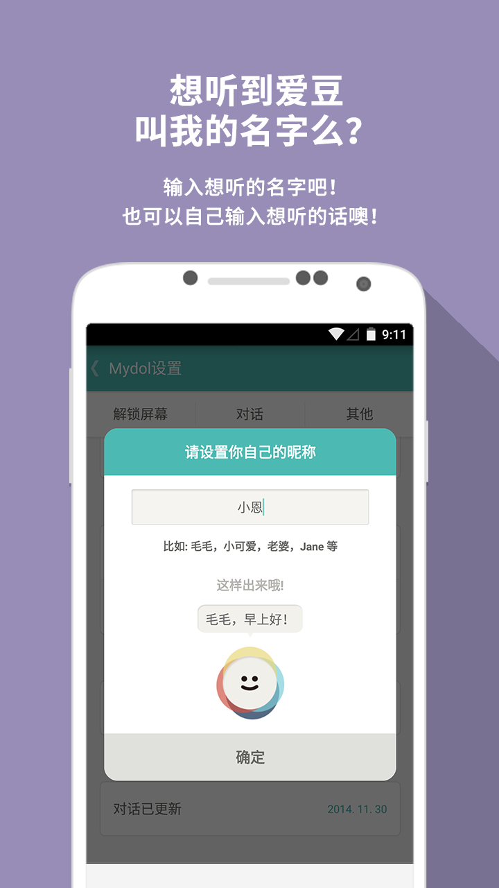输入想听到的昵称,自己设定的明星叫我的名字/昵称,并且跟我打招呼。如果有自己想听到的词语,也可以添加特别的词语