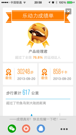 添加微信、微博好友,跟朋友比拼每日运动成绩。跟好友一起锻炼身体,更有动力!