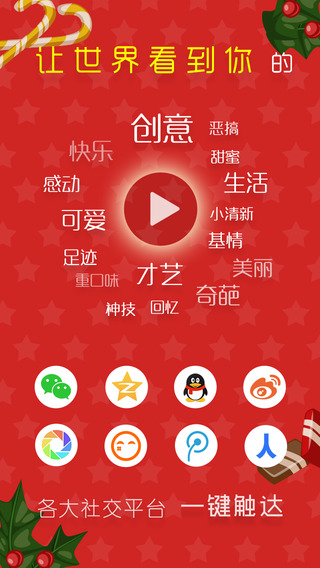 - 多种拍摄镜头更好玩:画中画镜头、特效镜头、搞怪镜头、音乐镜头;