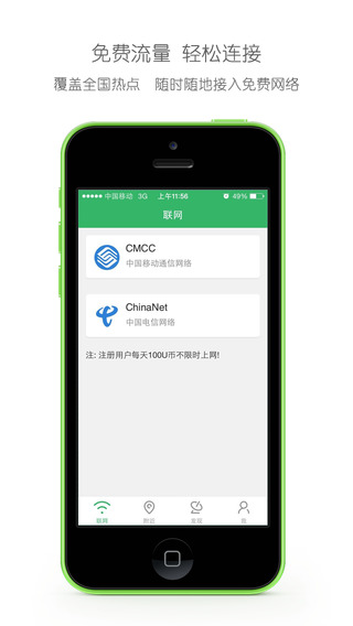 Wifi畅游是一款连接网络的必备上网工具。帮助用户在医院、学校、机场、酒店....等公共场所接入运营商热点,不限时、不限流量快速而便捷的畅享网络。蹭网方便且安全。