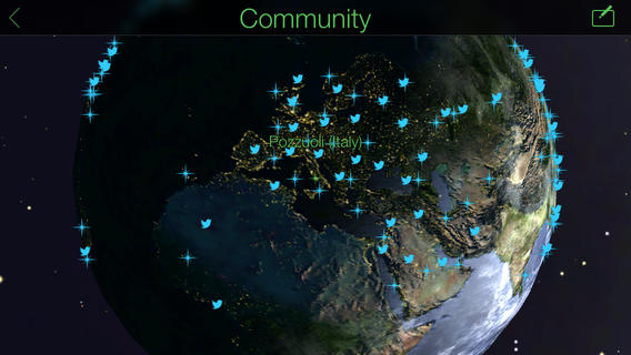 使用StarWalk您可以观察恒星、行星、星座、流星雨,不仅从您现在的位置,而且从地球上任何地点。请旋转一下三维地球仪, 选择任何位置并从那里观察恒星。