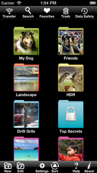 您可以把照片和视频按目录结构组织起来,并且使用密码将整个软件或者目录锁起来。本软件还有一个特别的功能:她可以将那些试图输入密码打开软件的人的照片拍摄下来并记下当时的地理位置,供您日后查看。