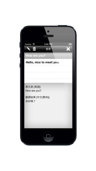 - 支援翻譯語言:中文(簡/繁), 文言文, 英語, 日語, 韓語, 法語, 西班牙語, 意大利語, 德語, 俄羅斯語, 葡萄牙語, 菏蘭語, 菲律賓語, 芬蘭語, 希臘語, 印尼語, 馬來語, 挪威語, 泰語和越南語