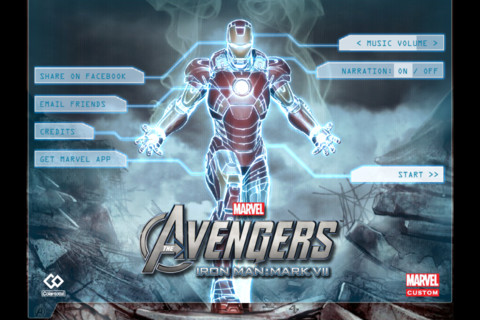 钢铁侠之复仇者联盟《MARVEL’S THE AVENGERS: IRON MAN – MARK VII》是一款钢铁人的有声互动式漫画书,故事由主角史塔克在洞穴中开发出的钢铁人 Mark I 开始,分段以互动漫画方式,透过不同绘画内容,便可以进行不同动作,这个故事有 15 页之多,语音的部份点选字母便可发音,音乐来自于电影原声,让你沉浸在漫画之中。