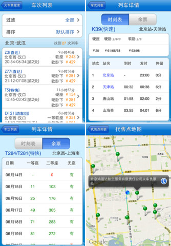【火车票】12306同步的列车时刻表,余票数据,还支持手机直接购买火车票,省去排队之苦。