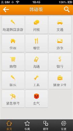 如交通、问候、银行、购物、娱乐、餐饮等,每条语句点击即可发音,简单方便。