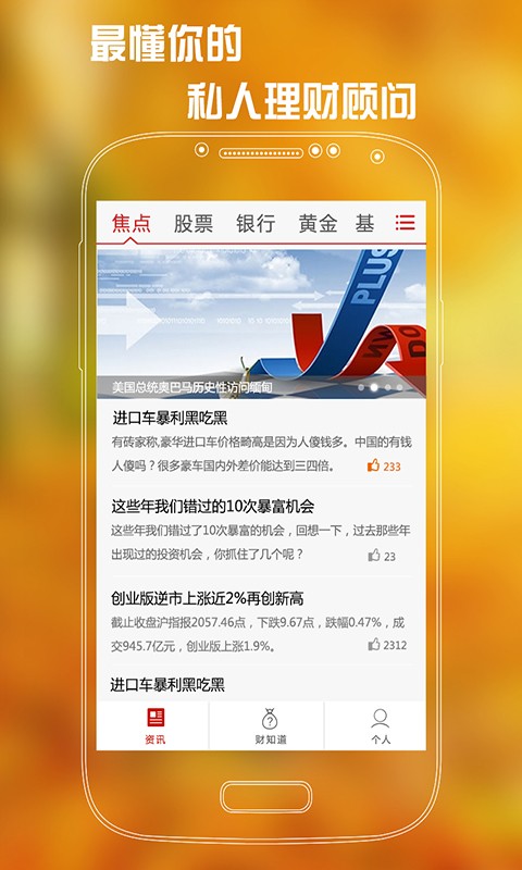 1.每天为你奉上鲜活实用的理财资讯,涵盖股票、贵金属、保险、银行、基金、彩票、理财产品。