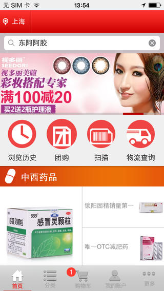 手机下单享特惠,全场“满100返10”(订单满100元免运费,还返10元)。1号药店来自知名电商1号店旗下,100%正品,天天低价,全国快递送货上门,支持支付宝、货到付款和货到刷卡。1号药店购药实现“次日达”,包含北京、上海、广州等各大城市市区。
