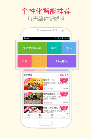 查找:地图/列表双重模式,搜罗身边美食、电影、酒店、KTV等团购;