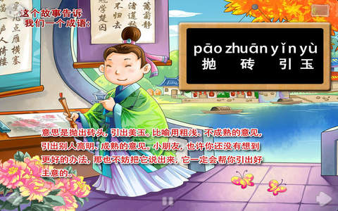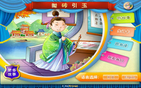 《成语故事》系列是由JoyOrange针对ipad和iphone平台开发的儿童教育读物之一, 以“寓教于乐”“在玩中学”为理念, 将成语学习用讲故事的方式和互动的练习展现出来, 让小朋友在新鲜快乐的氛围爱上学习!,