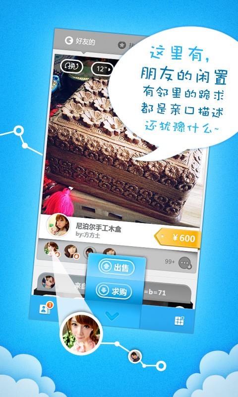 小交易,“会说话”的好友邻里买卖交换服务。 就是这么简单,拍张照,说句话,买卖、交换分分钟轻松搞定~ 这里有朋友自己的闲置,有邻里的亲口描述,靠谱无需犹豫~ 你求,我有,小交易一下,TA就是你的了~ 陌生人交易保障计划让交易刚放心~ 快捷发布、迅速变现、真实内容,最棒的好友邻里买卖交换服务~