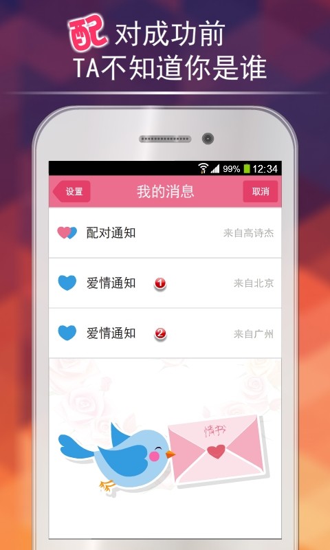 配对成功前,TA不知道你是谁;配对成功后,你们可以开始聊天和别的什么,你懂的……