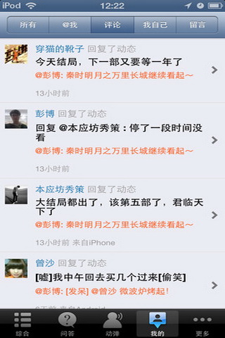 4.我的空间,查看评论、@我、留言等信息