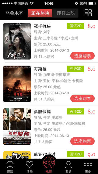 5.支持各大影院的通兑票购买,让您有更多的观影选择;