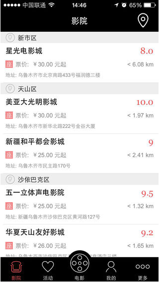 2、影院列表增加城市切换,便于用户操作