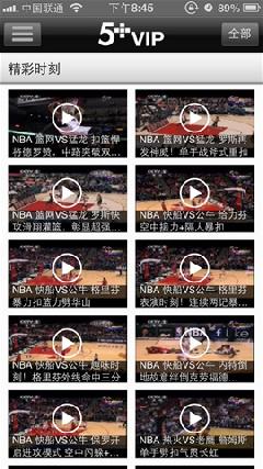 5 VIP 移动客户端暂不提供篮球NBA联赛的视频直播和录像,但是提供实时比分、文字直播、数据统计功能和比赛精彩视频片段。