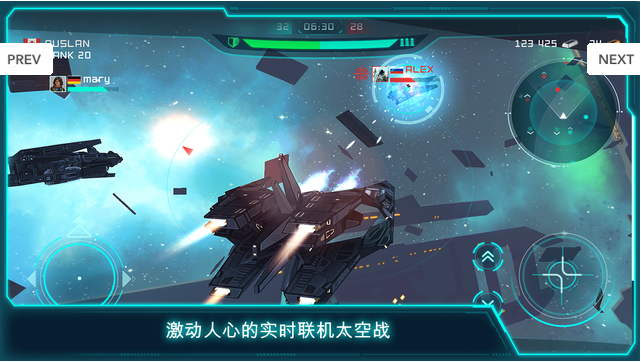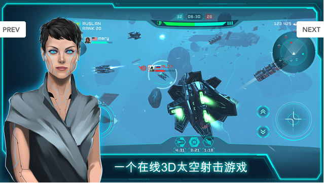 未来太空大战是一款画面非常精美带有科幻效果的大型3D太空射击类游戏,在游戏中玩家需要控制主角去完成一系列战斗射击任务。从未如此接近太空!加入全球太空战,独自一人对抗其它人,或与您的朋友一同奋战,创建一支团队!完成相对简单的日常工作,并参加战斗赚取游戏币。快来下载游戏试试吧!