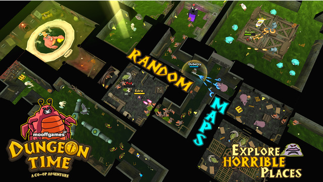 《地牢时间》是一款射击冒险游戏,内容正如其名字所示,就是在地牢中探索杀敌。可以使用的角色有四位,玩家进入游戏之后将以上帝视角控制他们前行,击杀遇到的怪物后才能继续前进。