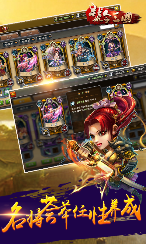 数百名魏蜀吴群雄武将任您选择,士兵卡、战马卡、兵书卡助您绝地逆袭!