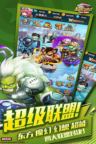 《超能复仇者》是一款打破题材时空界限、离散开放式的超级盟卡牌对决手游,”超级盟“即代表游戏不止一个世界观、阵营、联盟,玩家面对的不止一个次元的对手,华夏、幻想、魔幻、超能还有日漫,更多未知的题材在等待玩家探索,狼人、牛魔王、绿巨人、钢铁人、孙大圣、武圣关羽、黑岩射手、巫妖王、真宫寺樱、海贼王还有蝙蝠男、刺客阿萨辛等等总有合适你的英雄在等待。超多玩法、卡牌搜集、大陆征战、角色养成、装备打造、宝物合成和世界boss、竞技场pk、跨服联赛等等,在这里,体验快节奏、扫关卡、炫特效、爽到底的卡牌激斗。