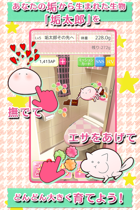 3、将一种被称作垢太郎的神奇生物培养成帅气的男子,并与其展开浪漫的恋爱关系。