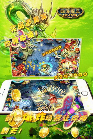 捕鱼四海龙王是一款给你刺激爆炸场景让你嗨翻天的街机风格捕鱼类游戏,游戏的画面将是全新绚丽体验,这款游戏可以多人联网享受捕鱼的乐趣!