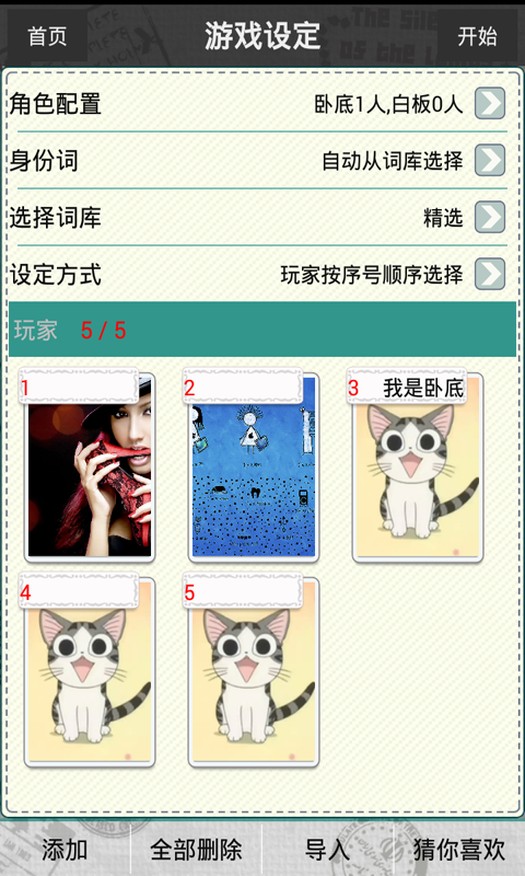 1、快速游戏模式:与之前版本相比,不需要把玩家先加入游戏,而是边抽签边进行拍照、昵称设定、分配序号。系统会存储玩家信息,进行完一轮游戏之后,即可在设定中进行修改、离开等操作。