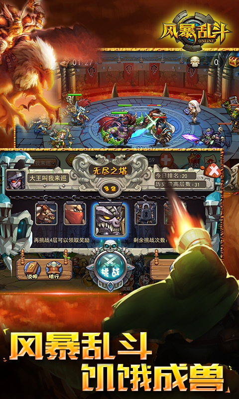 《风暴乱斗》还原最爽快的魔兽副本战斗体验,最多可组八人团队,齐上阵刷副本,在手游中实现多人Raid不再是梦想。战前充分调兵遣将、运筹帷帐,充分体现您的团长本色;战斗当中,随时指挥MT拉怪、法师输出、牧师拉人,让您团长的战场指挥艺术发挥到极致!游戏中,可实现“5vs100“的战斗场面,面对如敌方潮涌的天灾军团、亡灵大军,团长您的任何操作都将决定我们的生死!
