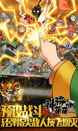 2015最乱斗手游《神将萌萌哒》突破传统束缚限制,带你领略三国与封神人物之间的炫酷战斗!全新感受弹指间敌人灰飞烟灭、畅快斩杀的爽快体验。 “神将萌萌哒”设定在一个奇异错乱时空之中,玩家在曲折离奇的故事情节中,被引导着建立抗争魔兵的据点,攻城略地展开与上古圣魔的正邪大战,并且一步步揭开时空错乱之谜。