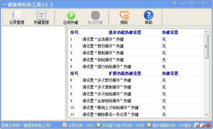 1、可自定义操作热键,并可随时更换,方便灵活。