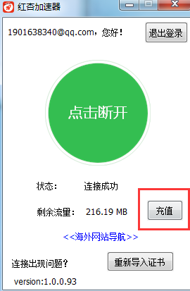 成功登录,点击连接,即可跳转到海外网站导航,您可以随心所欲的浏览网站。注意:一个账号里的流量在各个端口都是通用的。