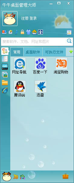 牛牛桌面管理大师是一款c。帮您管理桌面文件,让软件、文档、快捷方式归类更加详细、桌面不再凌乱,软件界面简洁干净,支持多款皮肤。